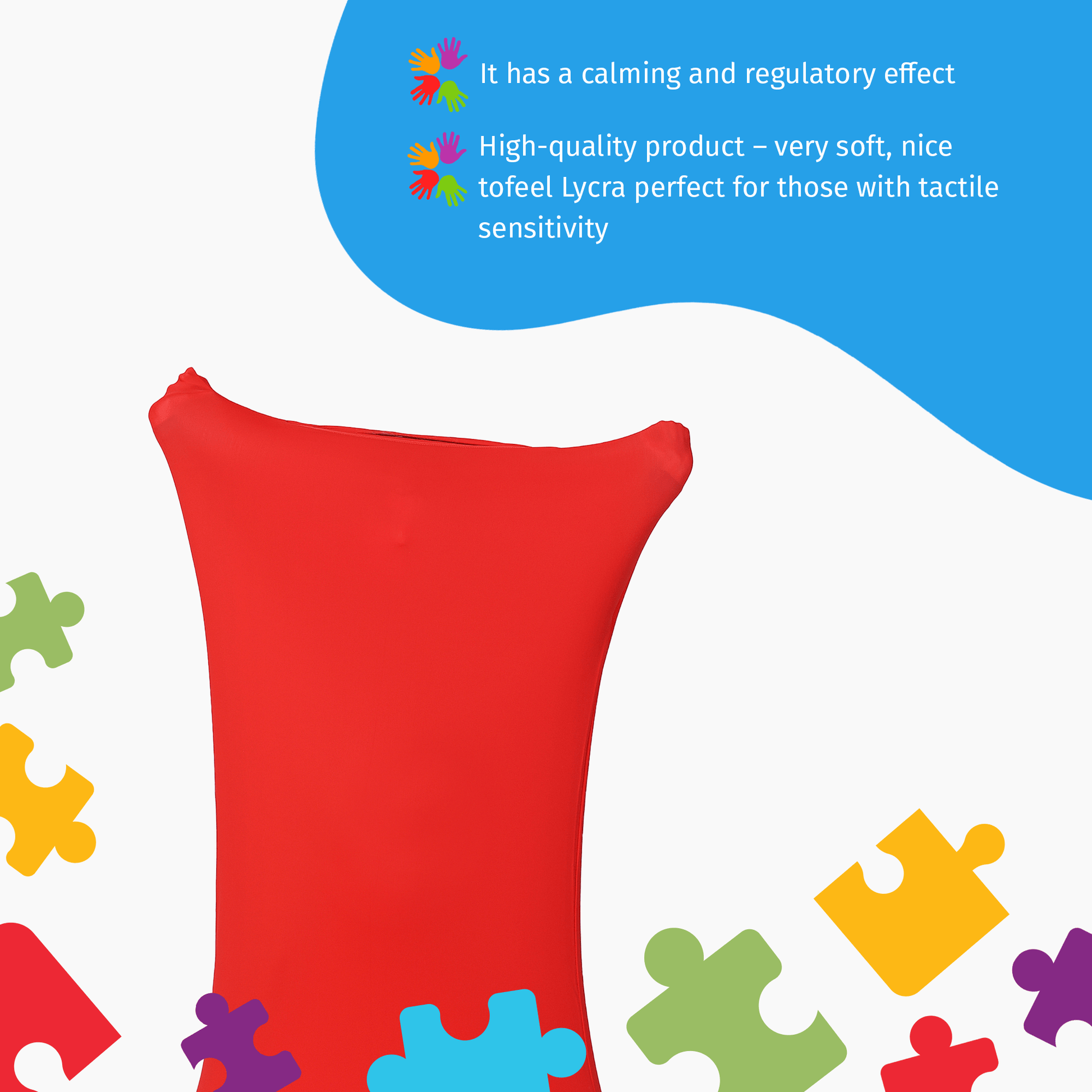 Sensory Body Sock is an excellent addition to your child's sensory diet. It helps to relieve energy, reduce stress and fight sensory overload. Use it indoors as well as outdoors.